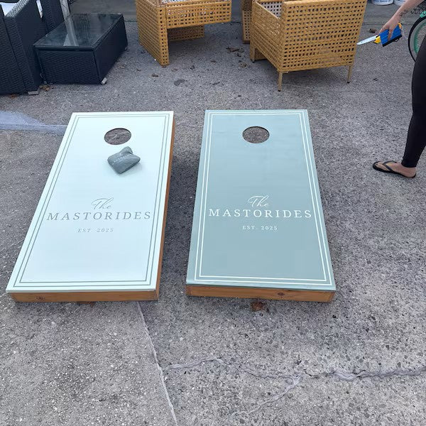 "I was on the fence about painting my cornhole set myself for my wedding, but I’m so glad I ordered these decals instead! They are absolutely gorgeous and were so easy to apply. The seller was also so quick to respond and very helpful making sure they came in time. I’m so excited for our wedding guests to see these! OH, and the matching bags are a must!!!"